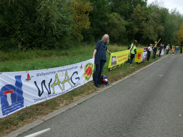 Auch die „Wolfenbüttler AtomAusstiegsGruppe“ (WAAG) war selbstverständlich dabei und reihte sich ein. Die Kette im zugewiesenen Abschnitt 44 war geschlossen.