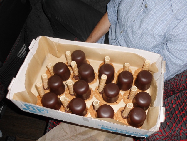 Zur Stärkung gab`s im Bus kleine „Atomkraftwerke“ zum Vernaschen. Der Fantasie der Anti-AtomaktivistenInnen war keine Grenzen gesetzt. So etwas trägt letztendlich dazu bei, eine lange Busfahrt erträglich zu machen.