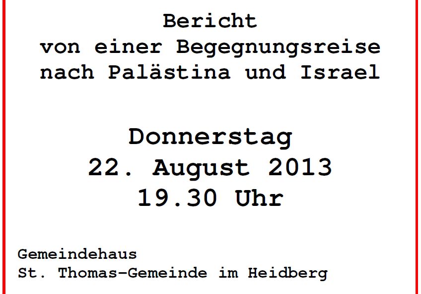 Politik Reise nach Israel-Palästina Von Uwe Meier - 20. August 2013 0 Teilen FacebookTwitterWhatsAppLinkedinEmail