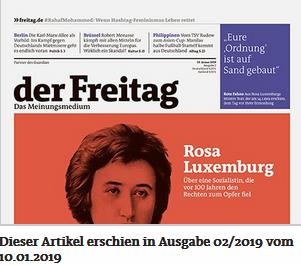 „Wer ein Jahrhundert nach ihrem Tod an Rosa Luxemburg erinnern will, hat zumindest zwei Möglichkeiten. Entweder rückt ihre Ermordung als logische Folge ihres politischen Handelns in den Mittelpunkt. Das macht es dann schwer, sie nicht als selbstlos für Frieden und Liebe kämpfende Heldin zu inszenieren. Oder das gewaltsame Sterben erscheint vor allem als Versuch ihrer Gegner, das Lebenswerk dieser radikalen Sozialistin in den Hintergrund zu drängen, unschädlich und vergessen zu machen. Das wäre dann eine Haltung jenseits des Mainstreams, der in Luxemburg heute kaum mehr sieht als eine Streiterin für undogmatisches Debattieren und die „Freiheit des Andersdenkenden“.