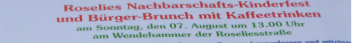 Im Roseliesquartier wurde gefeiert. Endlich! könnte man sagen, denn schon seit einigen Jahren sind die Bauarbeiten beendet. Es wurde auch mal Zeit mit dem Fest, damit sich die Bewohner mal kennen lernen. Nichts ist dafür besser geeignet als eine Straßenparty, damit alle mal zusammen kommen. Klar, dass ein Orga-Team gebildet wurde, denn es gibt bei so einem Feat extrem viel zu bedenken, anzustoßen, abzuwägen und in die bekannten trockenen Tücher zu wickeln.