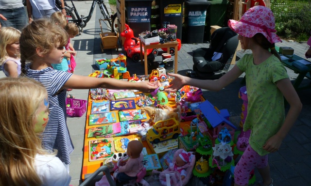 Gegen geringe Beträge oder im Tausch wechselten Spielzeug, Kinderbücher und Kinderfahrzeuge ihre Besitzer.