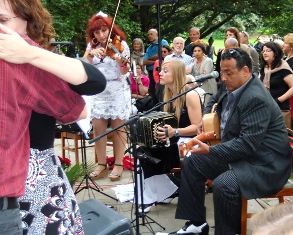 Das Tangotrio „Perfume de Mujer“ spielte auf. Aneta Pajek (Bandoneon) und Caio Rodriguez (Gesang, Gitarre) und eine Geigerin spielten Tangos voll Leidenschaft, Liebe, Feuer und Fernweh.