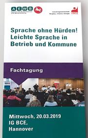 Lange, komplizierte Schachtelsätze, Fachwörter und Fremdwörter – auch in Ausbildung, Arbeit und Betrieb stehen viele Menschen vor den Hürden deutscher Schriftsprache. Wie solche Barrieren durch Leichte Sprache abgebaut werden können war Thema der Fachtagung „Sprache ohne Hürden! Leichte Sprache in Betrieb und Kommune“, die die Agentur für Erwachsenenbildung AEWB Hannover zusammen mit der Industriegewerkschaft Bergbau, Chemie, Energie IG BCE am 20.03.2019 in Hannover veranstaltete.