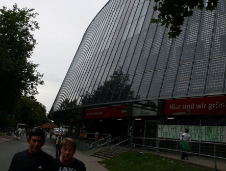 Foto: Das Weser-Stadion von Werder Bremen ist mit Solarzellen vollständig verkleidet.