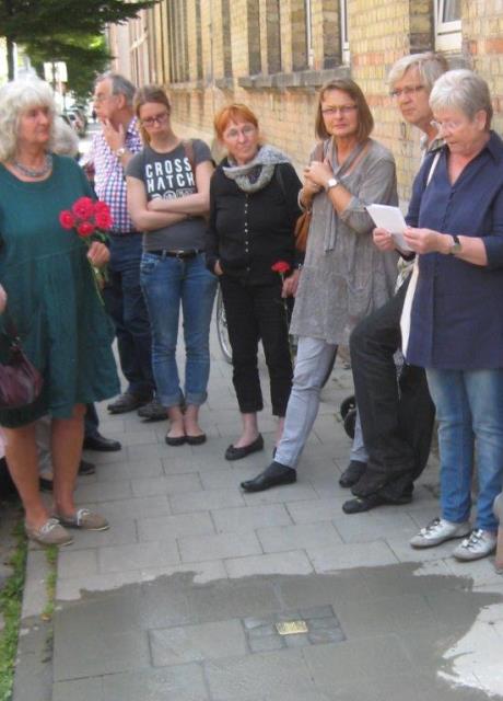 Mit dem Stolperstein wird eine Frau in Erinnerung bleiben, deren politische Arbeit bis in die Gegenwart wirksam ist und die mit Mut und Gradlinigkeit ihren Weg gegen Faschismus und Krieg ging.