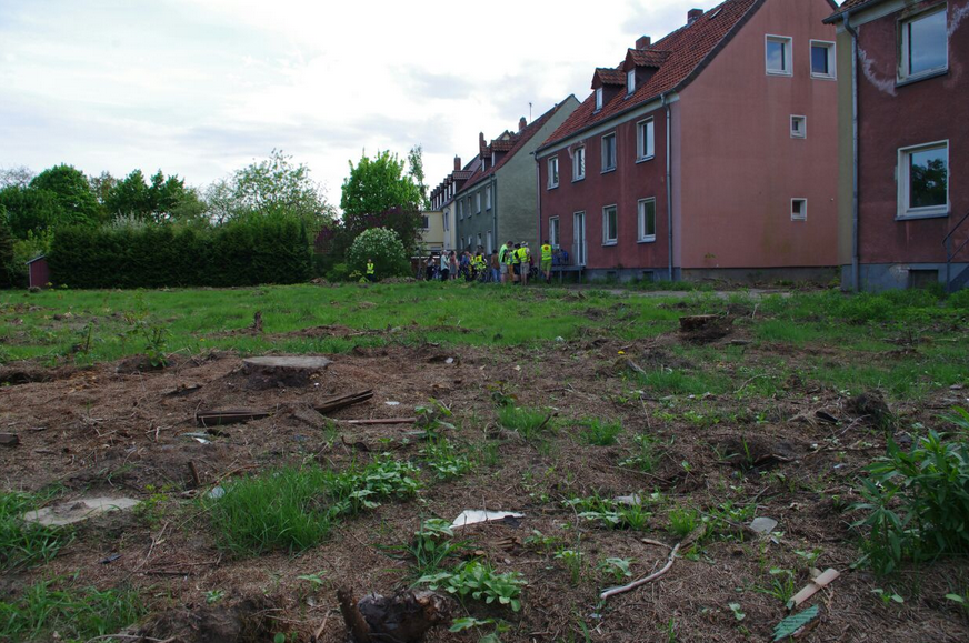 Auch das Gelände der ehemaligen Reitställe gegenüber der Stadthalle, auf dem jetzt die Borek-Immobilien baut, war früher mit vielen Bäumen bewachsen. Heute ist nur durchpflügte Erde ohne jeden Baumbestand geblieben. Ein ähnliches Bild bietet sich auf dem ehemaligen BZ-Gelände an der Hamburger Straße. Hier sind entgegen dem rechtskräftigen Bebauungsplan auf Druck des Investors alle Bäume gefällt worden. Ein Teilnehmer bemerkte: „Hier sieht es aus wie in der Wüste!“ Dabei wurden hier vor den Fällungen 17 verschiedene Vogelarten nachgewiesen!