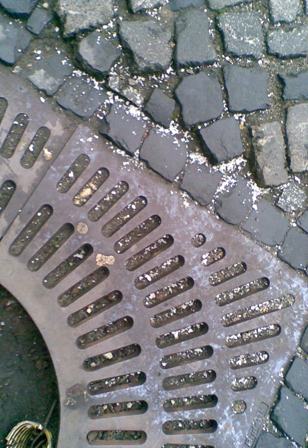 In dieser Gesamtlage muss man dann schon genauer hinsehen und längerfristig beobachten, wie in der Stadt mit Streusalz umgegangen wird, zumal dann, wenn weder Eis noch Schnee die Bürgersteige bedecken, aber das Wetter Schnee erwarten lässt. Es wird in Braunschweig nämlich auch dann Salz gestreut, wenn es nichts zu schützen gilt. Und nicht nur das, es wird auch falsch gestreut. In weiten Abständen, hier und da ein Häufchen Streusalz. Schlimmer noch, auch direkt und besonders viel auf die Baumscheiben, sogar an die Bewässerungsdrainage, damit das Salz mit dem Regenwasser möglichst direkt, rasch und ohne Umweg an die Wurzeln der Straßenbäume gerät. Dort kann das Salz dann sein zerstörerisches Werk beginnen. Dazu einige Fotos. Unter Zeugen fotografisch festgehalten am 28.01.2011.