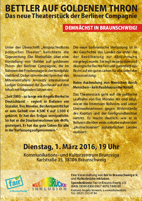 Theateraufführung der Berliner Compagnie BETTLER AUF GOLDENEM THRON