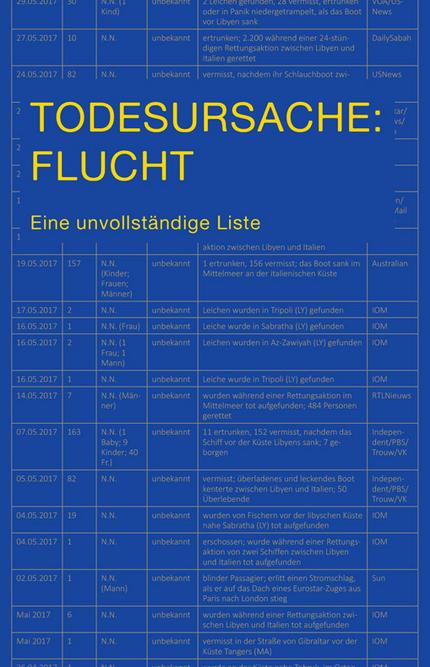 Die mehr als 300 Buchseiten umfassende Liste wird um kurze Porträts von einigen der Gestorbenen, Berichten von Überlebenden und Beiträgen von Heribert Prantl, Mitglied der Chefredaktion der Süddeutschen Zeitung, Rolf Gössner, Kuratoriumsmitglied der Internationalen Liga für Menschenrechte, Heinrich Bedford-Strohm, Landesbischof der Evangelisch-Lutherischen Kirche in Bayern und Ratsvorsitzender der Evangelischen Kirche in Deutschland, Stephan Lessenich, Professor für Soziologie der Ludwig-Maximilians-Universität München u. a. ergänzt. Unterstützt wird die Kampagne u. a. vom VS-Bundesvorstand, PEN Zentrum Deutschland, Sea Watch, Mission Lifeline, pro asyl, dem Münchener Bündnis „Gemeinsam für Menschenrechte und Demokratie“ und mehr als einem Dutzend weiteren Organisationen und Initiativen und vielen Einzelpersonen (siehe http://flucht.hirnkost.de/unterstuetzerinnen/). Es geht darum, das gesamte Ausmaß dieser Tragödie zu fassen zu bekommen und der Debatte um Flucht wieder ein menschliches Antlitz zu geben. Und es geht darum, in einer möglichst öffentlichkeitswirksamen Aktion auf das Thema aufmerksam zu machen, denn: Das Sterben muss aufhören.