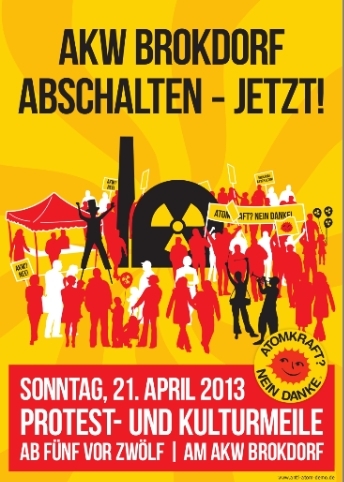 Die Arbeitsgemeinschaft Schacht Konrad hat einen Bus gechartert, und ruft auf am Sonntag, 21. April zur Demonstration nach Brokdorf zu fahren. Los geht’s um 07.30 Uhr am Braunschweiger Omnibusbahnhof am Hbf. Busfahrkarten gibt es ab sofort für 20 Euro/ ermäßigt 10 Euro.