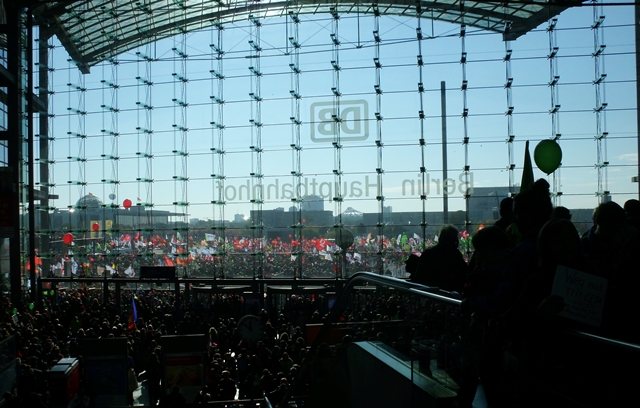 Die Demonstranten sammeln sich – im Bahnhof und auf dem Vorplatz