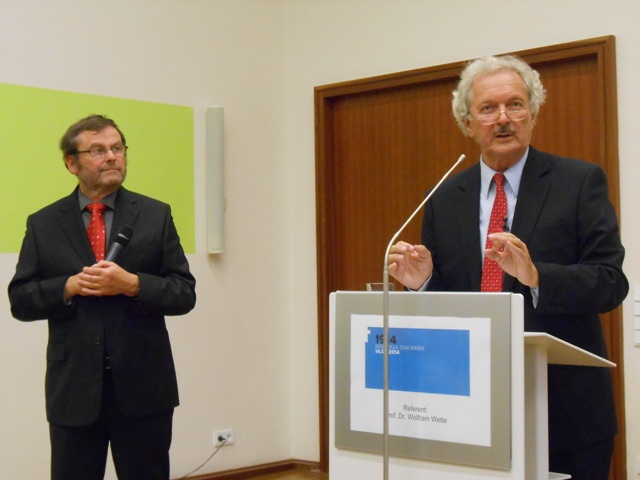 Prof. Wette und Uwe Meier bei der hoch interessanten und lebhaften Diskussion. Meier vom Konvent der Akademie organisierte und leitete die sehr gut besuchte Veranstaltung.
