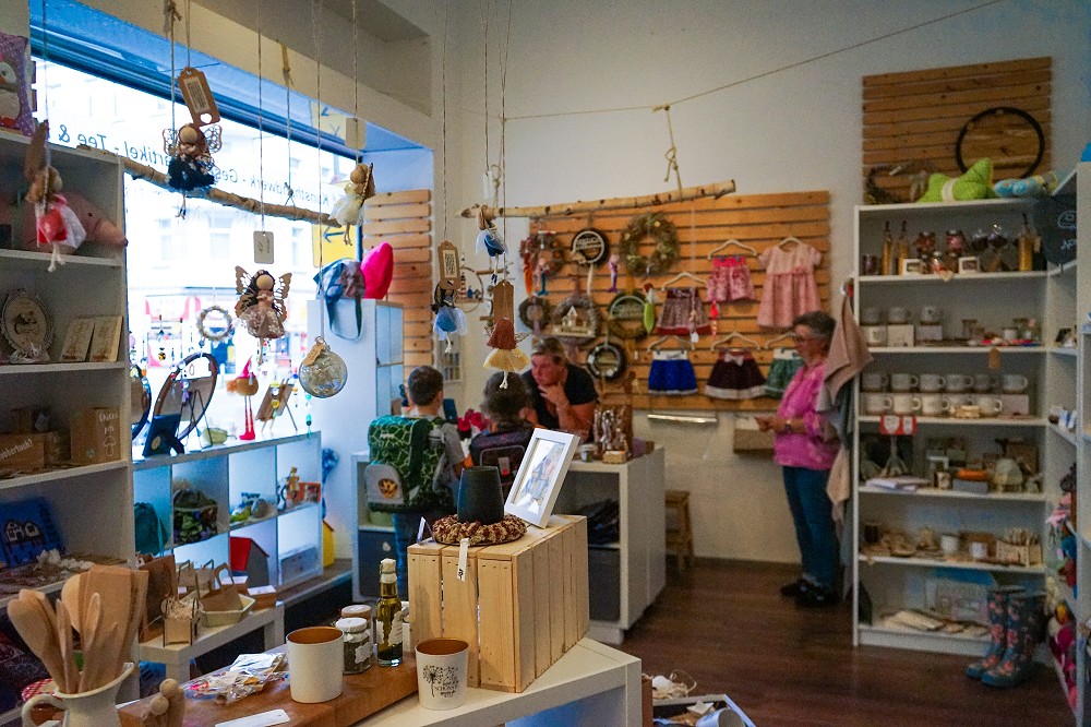 Heute stapeln sich auf 48 Quadratmetern Regale und Tische voller Schätze: handgefertigte Keramiken, origineller Schmuck, kleine Kunstwerke, Seifen, Tees, Geschenkideen aller Art. Das Besondere: Hinter fast jedem Stück steht eine persönliche Geschichte.
