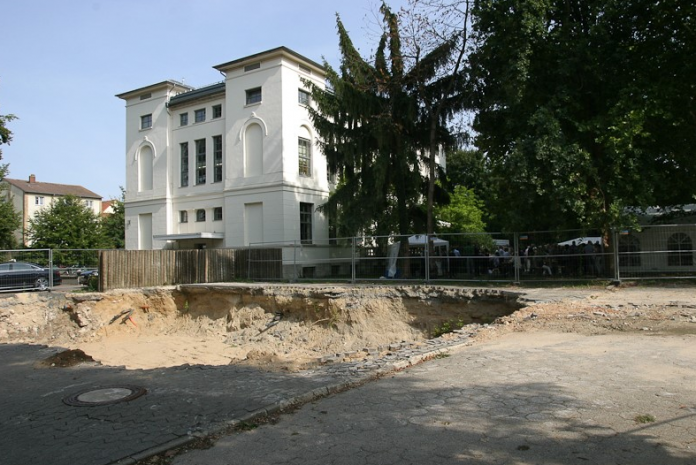 Auf dieser Fläche nordwestlich der v. Bülow’schen Volla an der Freisestraße entsteht das neue Bibliotheksgebäude des GEI. Foto: Klaus Knodt