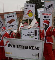 Dieser Meinung sind Weihnachtsmänner, Nikoläuse und Engel in ganz Europa: In Berlin, Tallin, Wien und Prag haben sie gegen die unhaltbaren Bedingungen in der Kakaoproduktion demonstriert. „Wir unterstützen die Kampagne Make Chocolate Fair!, weil wir der festen Überzeugung sind, dass wir gemeinsam etwas erreichen können“, erklärte Weihnachtsmannsprecher Klaus Santa in Berlin.