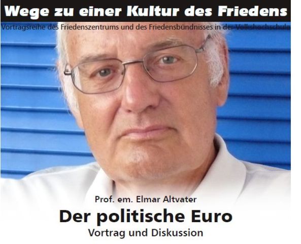 Politik Vortrag: der politische EURO Von Uwe Meier - 6. Mai 2014 0 Teilen FacebookTwitterWhatsAppLinkedinEmail Donnerstag, 15. Mai, 19:00 UhrSpeicher der Volkshochschule Haus Alte Waage Weitere Informationen