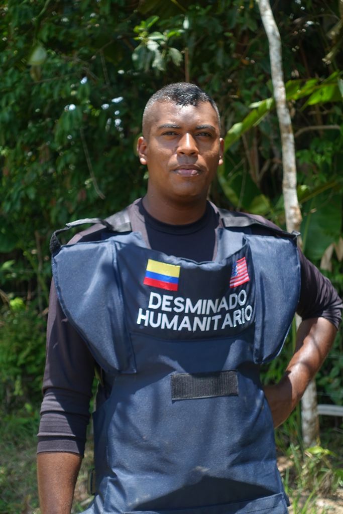 Landminenräumer bei 40 Grad Hitze im Einsatz direkt neben den früheren Kokafeldern und heutigen Kakaoplantagen. Diesen Menschen und den heutigen Kakaobauern gilt es Respekt zu zollen. Da ist die Diskussion um den Schokoladenpreis in Braunschweig kleinkariert und verachtend. (Foto: Uwe Meier)