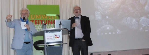 Wolfgang Wiechers als Diskussionsleiter links und der Vortragende Prof. Brandes rechts auf dem Foto. (Foto: U. Meier, Fair in Braunschweig)