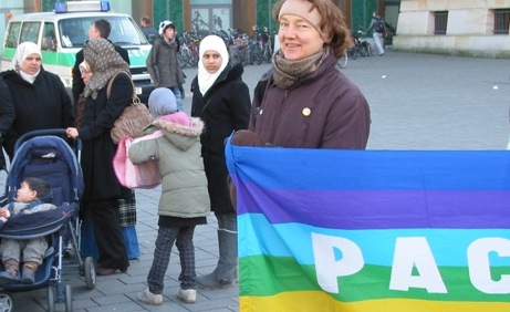 „Frieden kann nur bei Gewaltfreiheit entstehen“ und deshalb reist die Ärztin Dr. Friederike Speitling mit nach Palästina, um ihre Solidarität mit dem gewaltlosen Widerstand der Palästinenserinnen und Palästinenser zu demonstrieren. Sie reist auch als Vertreterin der IPPNW, der internationalen Ärzteorganisation gegen die Verhütung des Atomkriegs/Ärzte in sozialer Verantwortung, die seit Jahren mit palästinensischen und israelischen Friedens- und Menschenrechtsorganisationen für eine friedliche Konfliktlösung zusammenarbeiten.