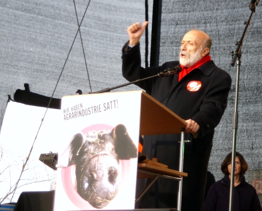 Es zeigte sich, dass sich neue Bündnisse entwickeln zwischen Gruppen, die zunächst mit der Agrarwirtschaft nichts zu tun haben. Das wird eine spannende politische Bewegung. Die scheint sich EU-weit zu etablieren. Erstmalig war der Gründer und internationale Vorsitzende von Slow Food Carlo Petrini auf der Tribüne. Er sprach über die europäische Kultur, die hauptsächlich vom Bauernstand europaweit getragen wird. „Zerstört man die Lebensgrundlagen der Bauern, zerstört man europäische Kultur.“