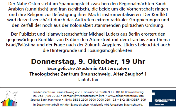 Politik Wohin treibt der Nahe Osten? Von Uwe Meier - 26. September 2014 0 Teilen FacebookTwitterWhatsAppLinkedinEmail http://www.michael-lueders.de/