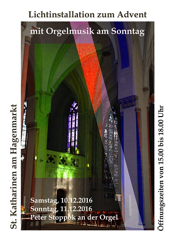 Am 3. Advent bietet die Katharinenkirche eine Alternative zum Verkaufsoffenen Sonntag! Peter Stoppok, charismatischer Pianeur und bekanntester musikalischer Geheimtipp der Region, bietet wieder ein Wunsch-Weihnachtslieder-Lieder-Konzert an der Orgel, besinnlich, geruhsam, beschaulich und individuell. Wer am 3. Advent eine Alternative zu süßlichen Klängen sucht und persönliche Improvisationen über „sein“ Weihnachtslied hören möchte, ist ab 15:00 Uhr am richtigen Platz. Dazu gibt es Gelegenheit zum Gespräch über Orgel und Musik im Allgemeinen (und vielleicht noch mehr Überraschungen).