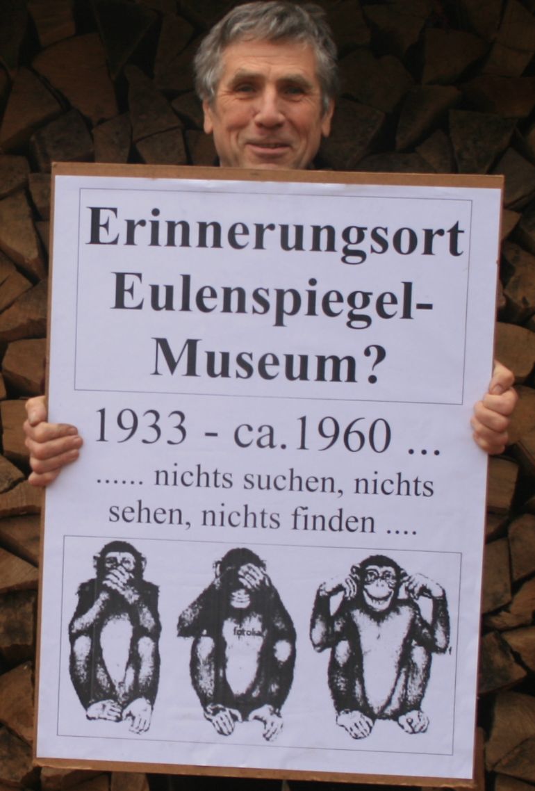 Eulenspiegel wäre heute vielleicht ein Kabarettist, behauptete Schöppenstedts Eulenspiegel-Fachmann Professor Alexander Schwarz im Oktober 2013; weil er ein Mann mit vielen Gesichtern gewesen sei. Man kann da auch ganz anderer Meinung sein, besonders, wenn man herausfindet, dass ein dem Eulenspiegel auch durch Braunschweiger Nationalsozialisten aufgedrücktes Gesicht von dem Lausanner Professor bewusst nicht beachtet wird. So bleibt dem Schöppenstedter Eulenspiegel-Museum der Blick in die eigene braune Geschichte erspart. Dass ein Geschichts-Museum die eigene Geschichte im Keller lässt und trotzdem ein offizielles niedersächsisches Gütesiegel erhält, gehört zur Geschichte unseres Landes, in dem es immer noch viele weitere braungefärbte Keller gibt oder Teppiche, unter denen es latent bräunelt. Gerade in dieser Zeit erleben wir die Auswirkungen dieser Gleichgültigkeit.