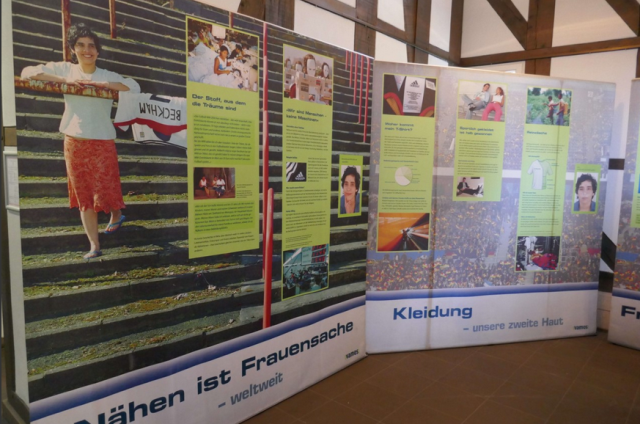 Die Kooperation von Fair in Braunschweig e.V. und der Volkshochschule Braunschweig hat die Wanderausstellung TrikotTausch nach Braunschweig geholt. Die Ausstellung stellt die zwei Seiten der Sportbekleidungsindustrie vor: einerseits die Vermarktung von Sportbekleidung und unser Kaufverhalten hier – andererseits die Arbeitsbedingungen der Näherinnen in den Weltmarktfabriken. Anschaulich erhalten die Besucherinnen und Besucher Informationen und erfahren, wie jeder Einzelne für die Verbesserung der Lebens- und Arbeitsbedingungen der Näherinnen in den Produktionsländern aktiv werden kann. „Die Kooperation mit der VHS und der Standort der Alten Waage ist eine tolle Möglichkeit das Thema Faire Produktion noch besser in Braunschweig zu verbreiten.“ freut sich Tanja Mühle, Regionalpromotorin bei Fair in Braunschweig e.V. „Wir hoffen viele Menschen mit der Ausstellung zu erreichen und freuen uns schon jetzt über das rege Interesse“