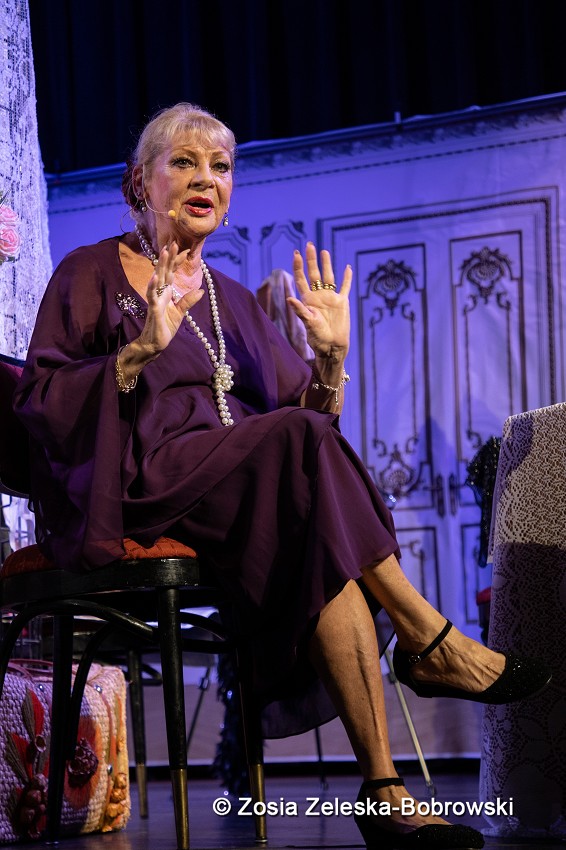 Auf der Bühne stehen Anna Kucay als Dichterin Maria Pawlikowska-Jasnorzewska und Katarzyna Drucker als ihre Schwester, die satirische Schriftstellerin Magdalena Samozwaniec. Beide Figuren entstammen der berühmten Krakauer Künstlerfamilie Kossak. Ihr Vater, der Maler Wojciech Kossak, arbeitete zwischen 1897 und 1902 in Berlin, wo ihm Kaiser Wilhelm II. ein Atelier im Hohenzollern-Museum zur Verfügung stellte und ihn mit Porträts und Schlachtenszenen beauftragte. In Deutschland verwendete er den Namen Adalbert Ritter von Kossak, einen österreichischen Adelstitel, der ihm aufgrund seiner Abstammung aus einer polnischen Adelsfamilie verliehen wurde. Trotz seines Erfolgs und seiner Beliebtheit beim deutschen Publikum kehrte er 1902 nach Krakau zurück. Seine beiden Töchter beherrschten fließend drei Sprachen – Polnisch, Deutsch und Französisch – und bewegten sich mühelos zwischen den Kulturen.