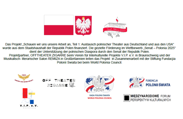 Veranstaltet wird der Abend vom Off Theater Zigarre beim Verein für Interkulturelle Projekte V.I.P. e.V. Braunschweig in Kooperation mit der Theatre and Opera Society „THEOS“ (New York). Gefördert wird das Projekt durch den Senat der Republik Polen im Rahmen des Wettbewerbs „Senat-Polonia 2025“ in Zusammenarbeit mit der Fundacja Polonii Świata.